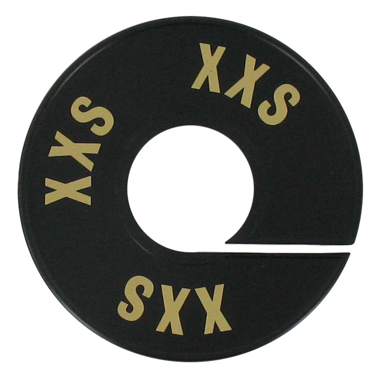 Maatschijf in het zwart met goudkleurige opdruk voor maat XXS.