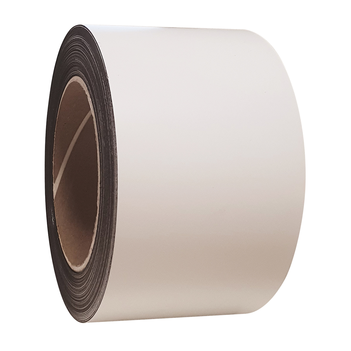 Magneetband 70mm wit 10 meter lang, zonder kleefband, per rol verkrijgbaar.