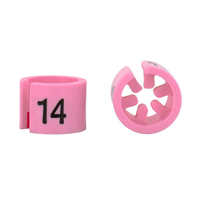 Maatdop mini in het roze met zwarte opdruk voor maat 14.