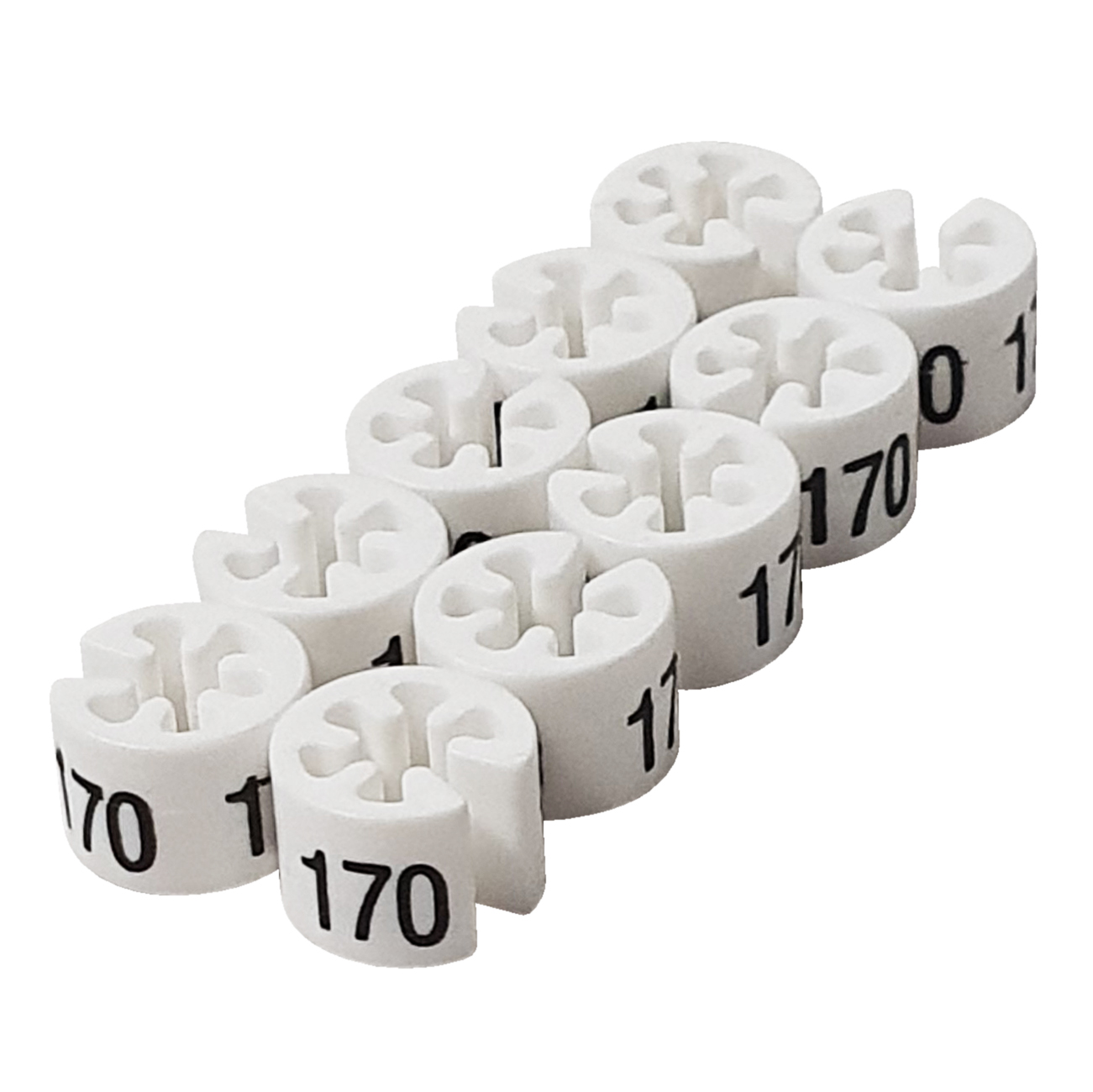 Door maatdoppen op de kledinghanger te plaatsen, is zichtbaar welke maat het artikel heeft.