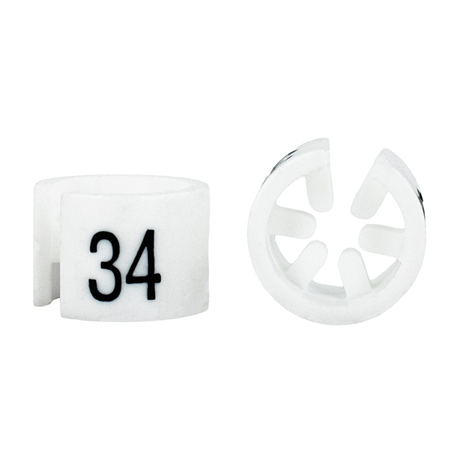 Maatdop mini in het wit met zwarte opdruk voor maat 34.