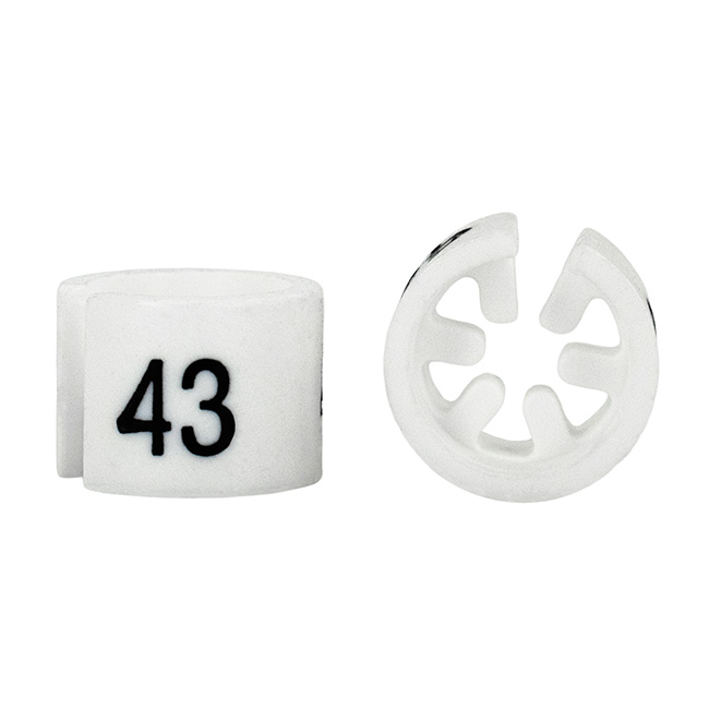 Maatdop mini in het wit met zwarte opdruk voor maat 43.
