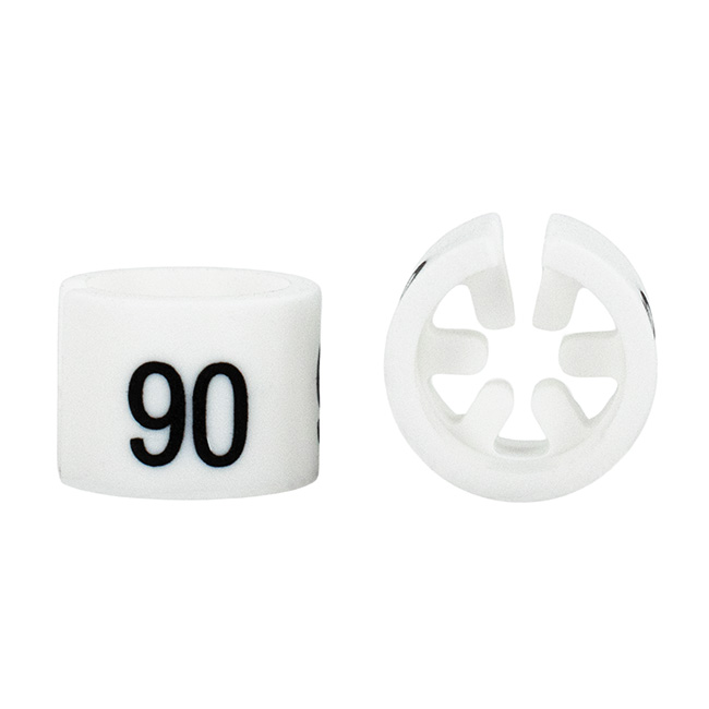 Maatdop mini in het wit met zwarte opdruk voor maat 90.