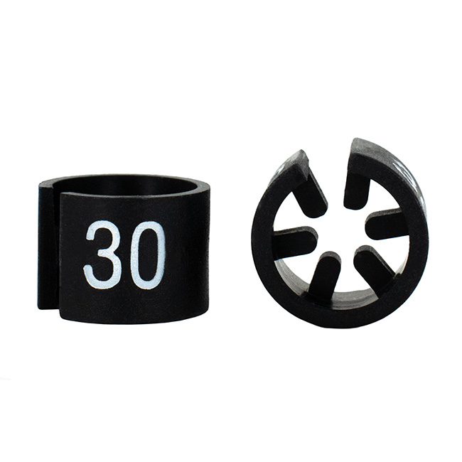 Maatdop mini in het zwart met witte opdruk voor maat 30.