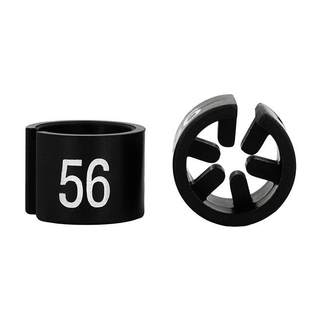 Maatdop mini in het zwart met witte opdruk voor maat 56.
