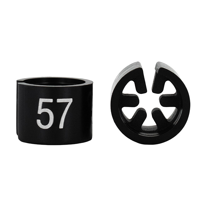 Maatdop mini in het zwart met witte opdruk voor maat 57.