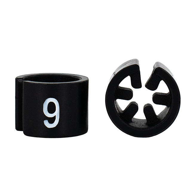 Maatdop mini in het zwart met witte opdruk voor maat 9.