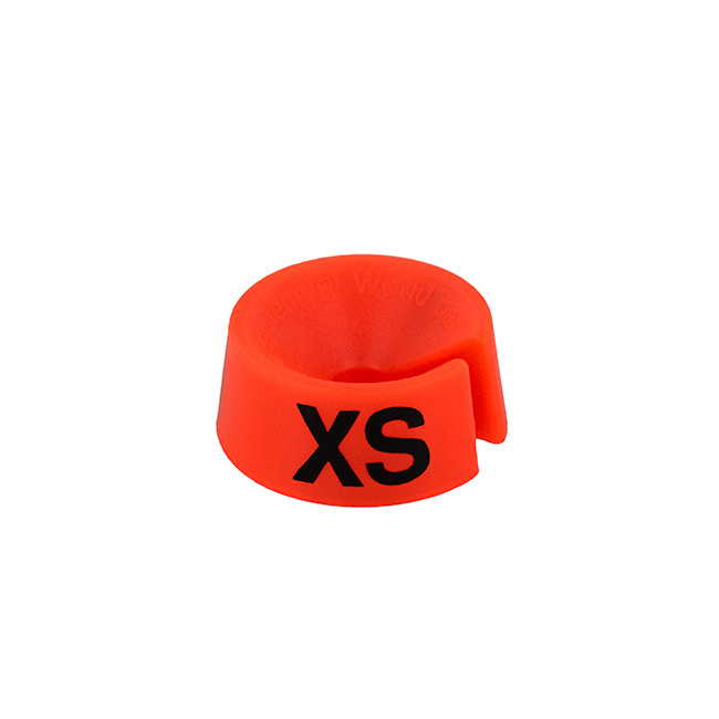 Maatdop MB2 in de kleur fluorescerend rood met zwarte opdruk voor maat XS.