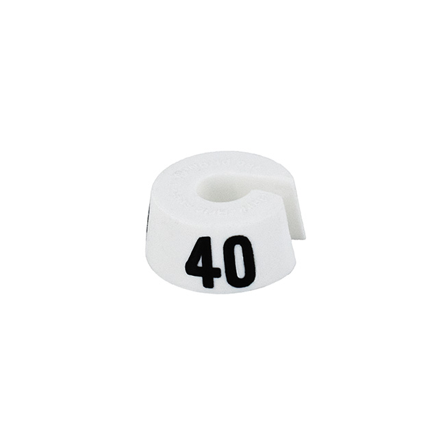 Maatdop in het wit met zwarte opdruk voor maat 40.