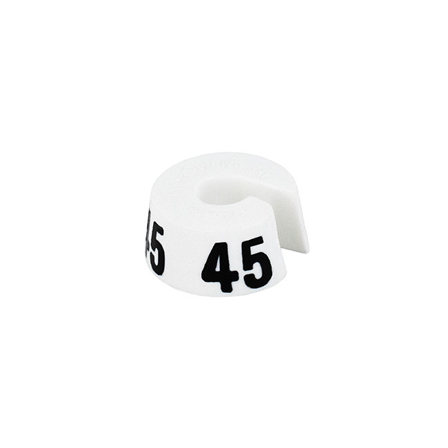Maatdop in het wit met zwarte opdruk voor maat 45.