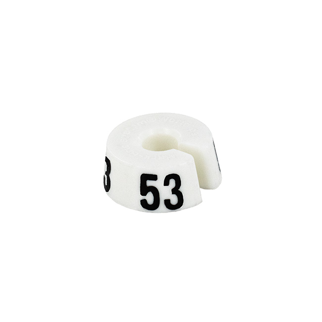 Maatdop in het wit met zwarte opdruk voor maat 53.