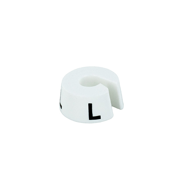Maatdop in het wit met zwarte opdruk voor maat L.