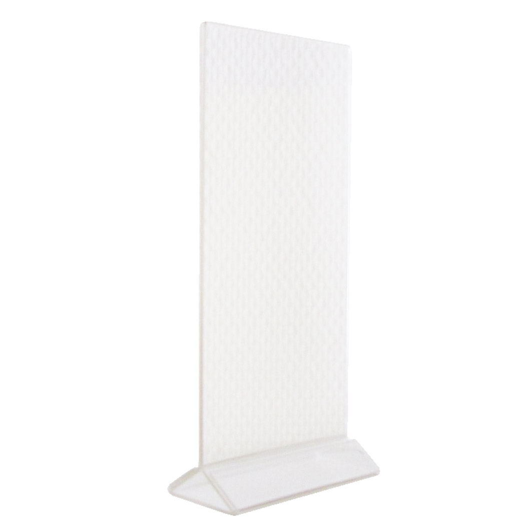 Transparante standaard van acryl materiaal, wordt bijvoorbeeld gebruikt voor een menu- of drankenkaart.