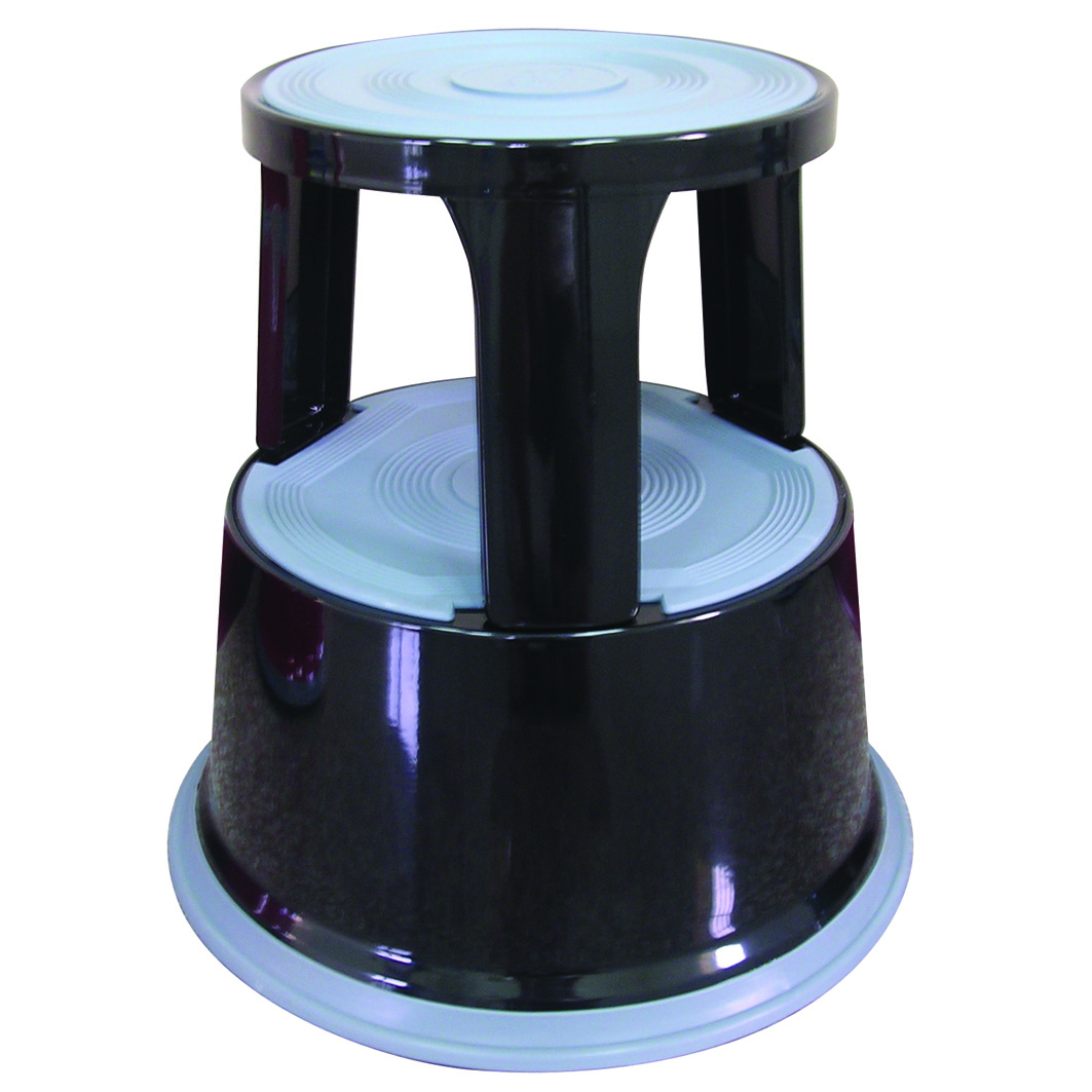 Zwartgekleurde opstapkruk van metaal met antislip op de stavlakken, per stuk verkrijgbaar.