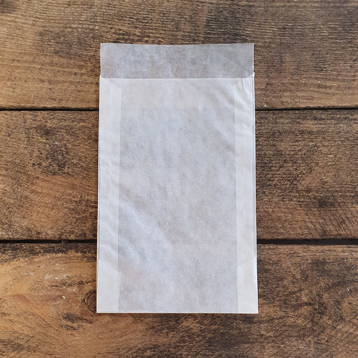 Pergamijn zakje 85 x 132 + 16mm, 40gr/m², klep ongegomd, per stuk verkrijgbaar.