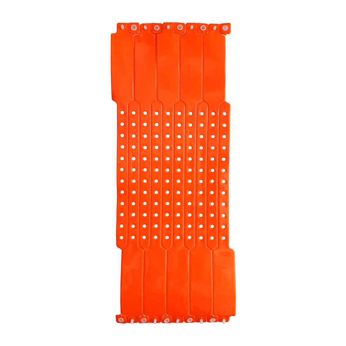 De bandjes zijn oranje en onbedrukt, hebben een totale lengte van 25cm en zijn 2,5cm breed.