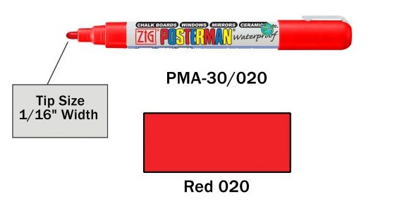 Posterman PMA30-020 rood 2mm waterproof marker.
