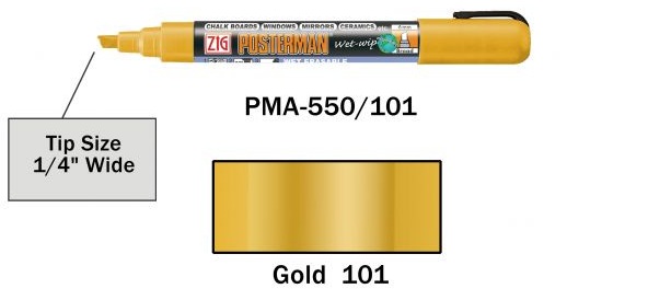 Posterman PMA550-101 metallic goud 6mm, wet-wipe.
