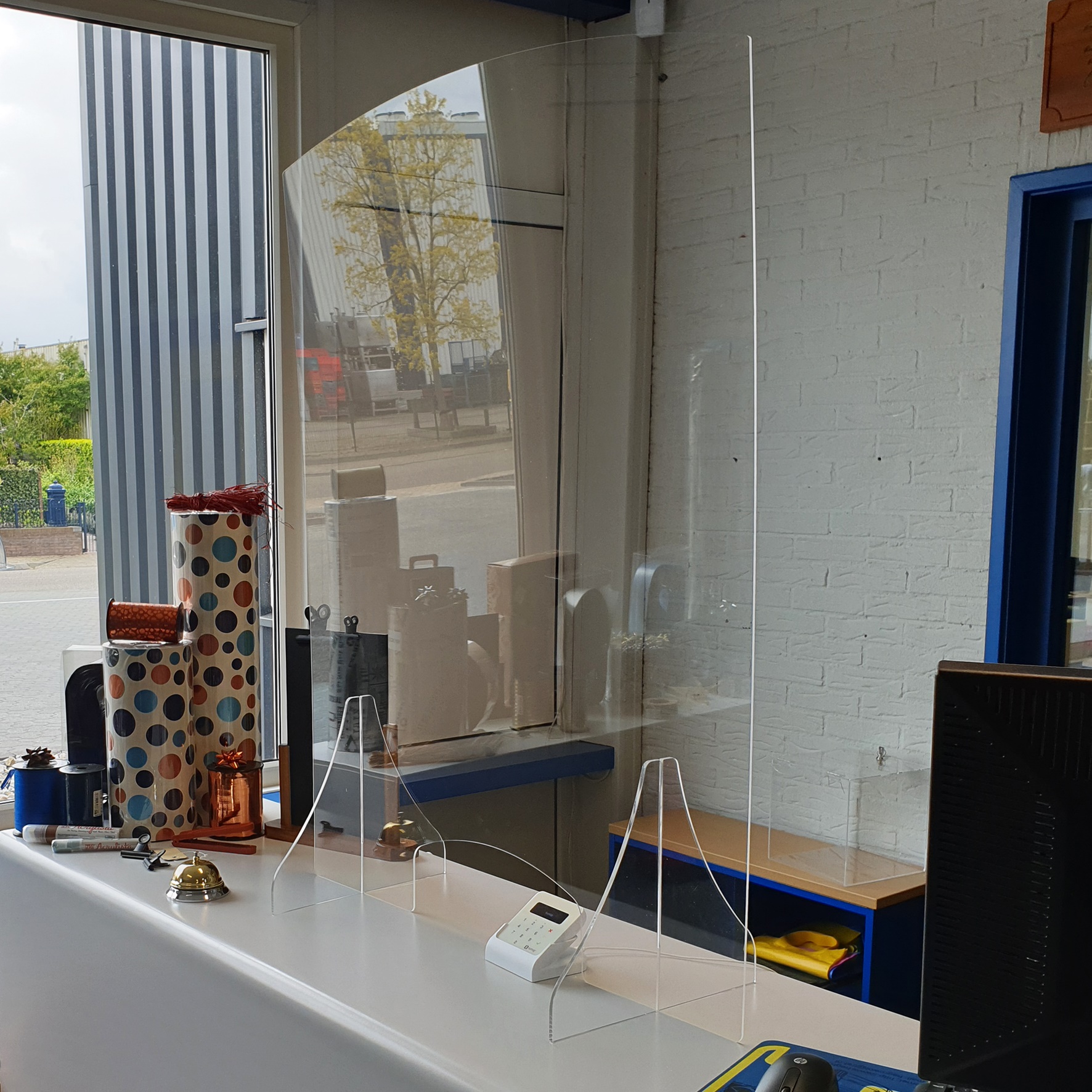 Transparant plexiglas preventie scherm voor op uw toonbank en balie. Het is ook te gebruiken als tafel preventie scherm.