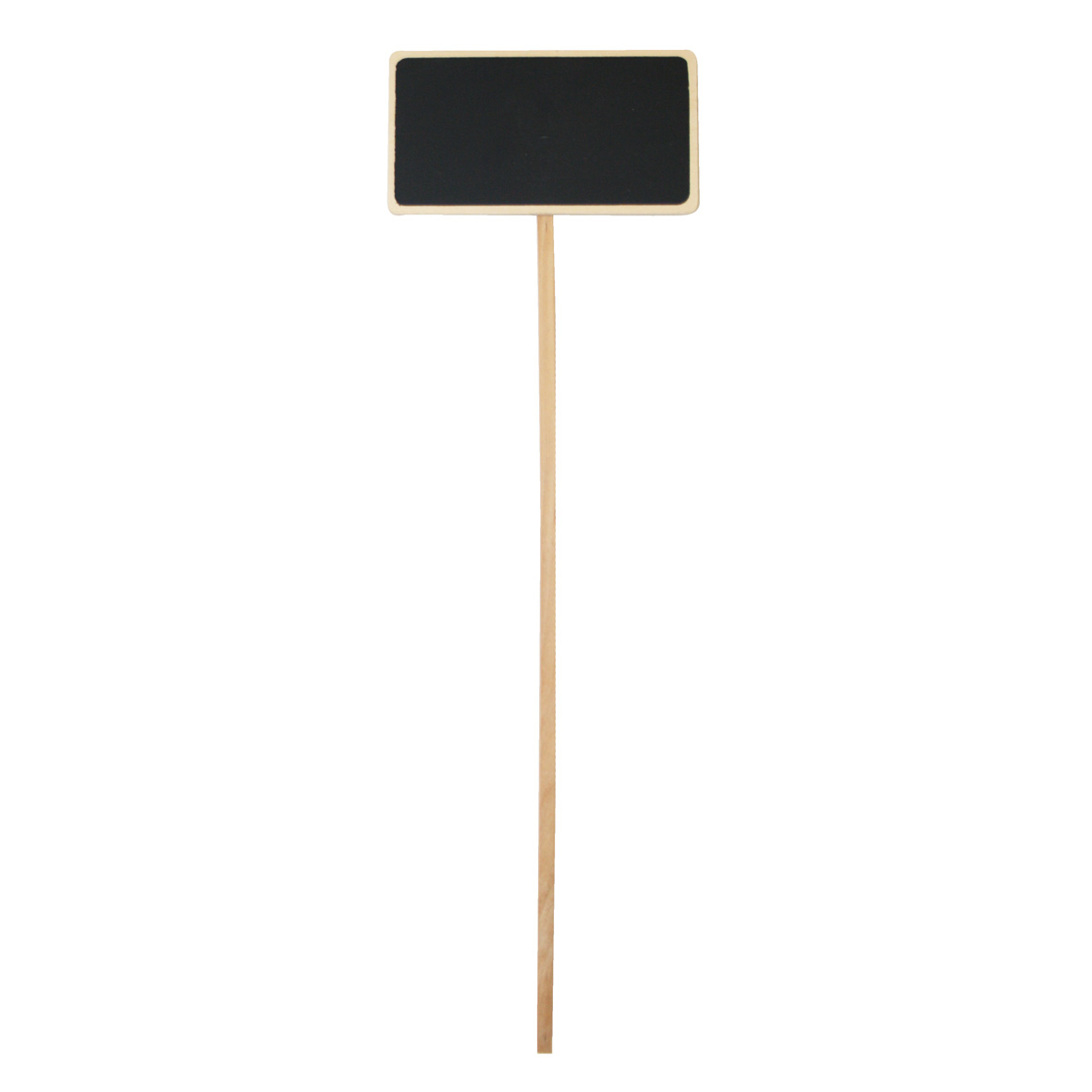 Houten prijssteker van 45cm, rechthoekig model met een zwart schrijfgedeelte van 11 x 6,5cm.