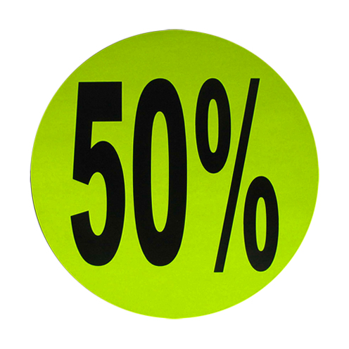 Raambiljet met de opdruk 50%, geschikt om precentages kortingen mee te presenteren in de winkel of etalage.