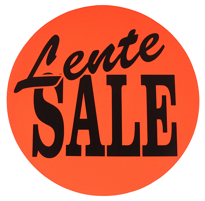 De opdruk ‘Lente Sale’ laat aan klanten zien dat er korting op bepaalde (seizoensgerelateerde) artikelen zit.