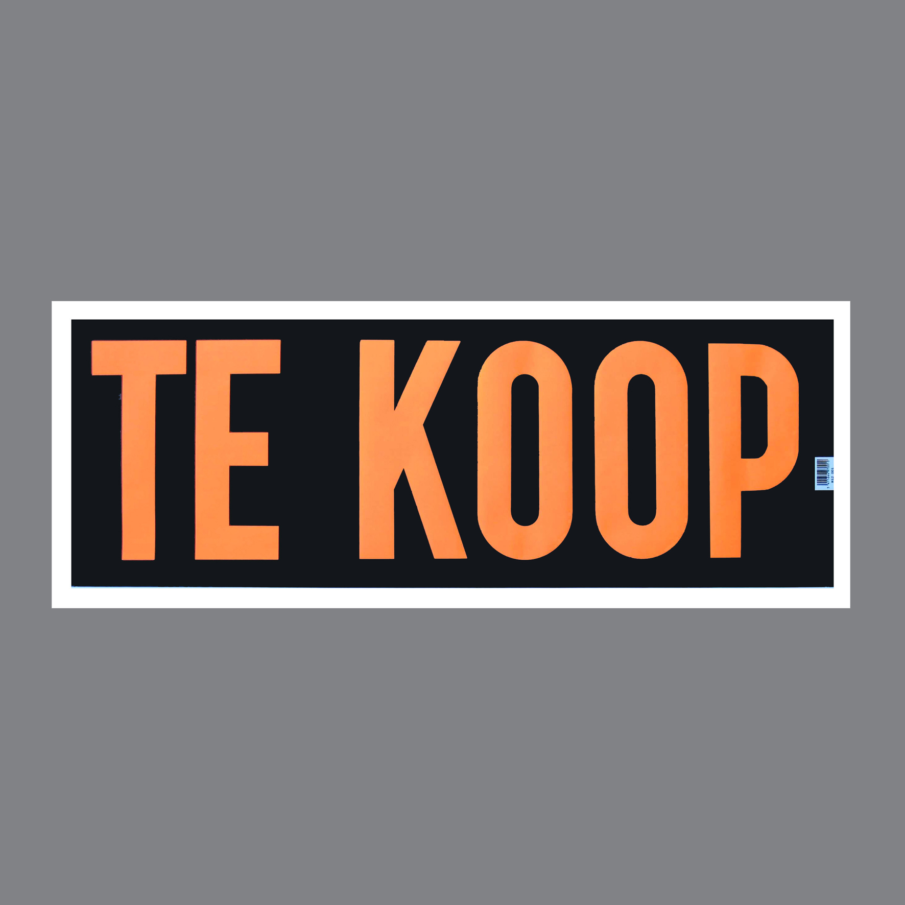 Raambiljet TE KOOP, zwart/wit/oranje, formaat 28 x 73cm.