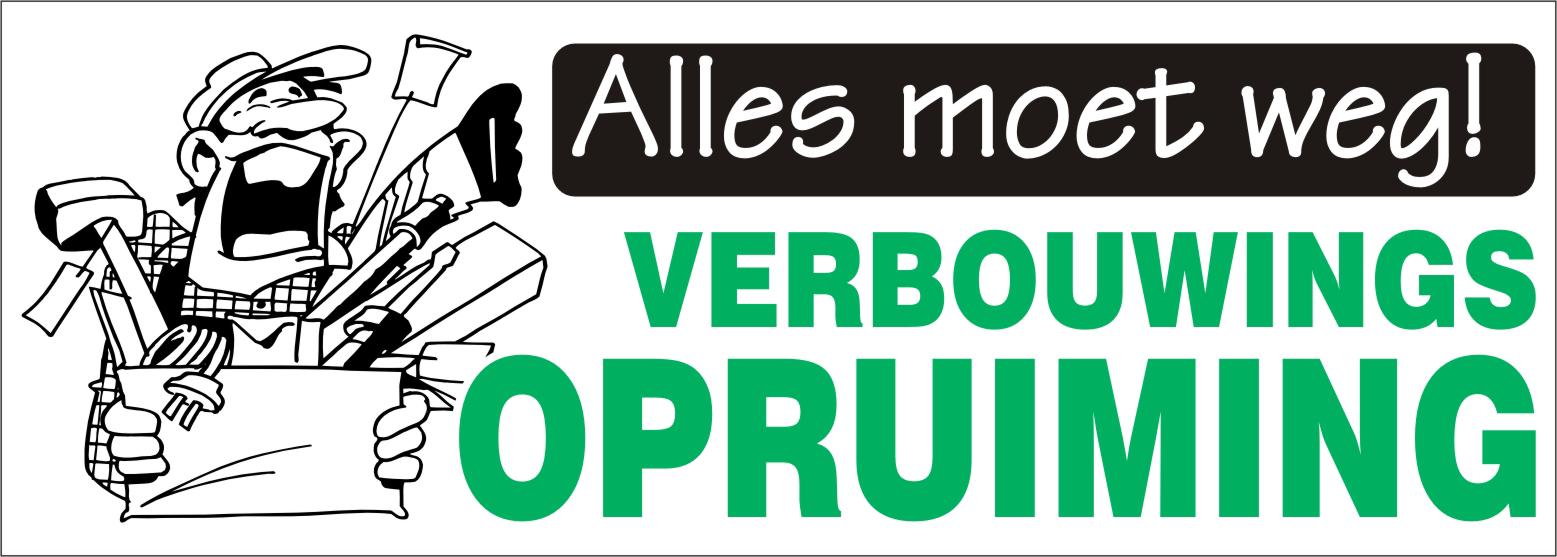 De opdruk ‘Verbouwingsopruiming’ laat aan klanten zien dat er extra hoge korting op de artikelen zit, in verband met een komende verbouwing.