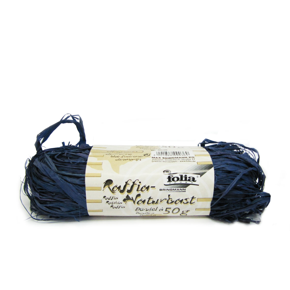 Raffia marineblauw bundel 50 gram.