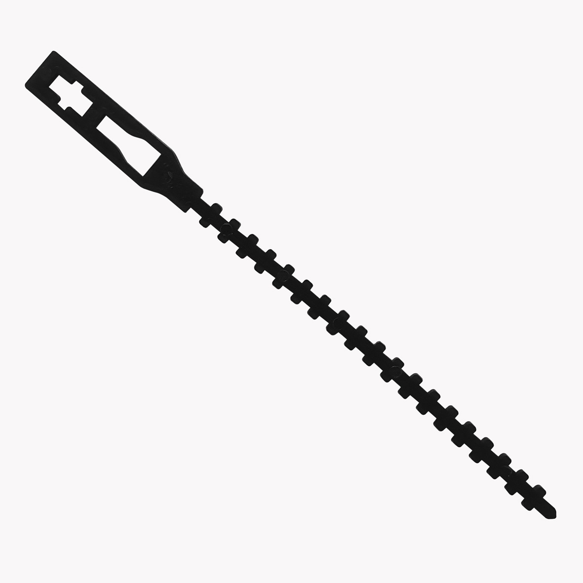 Rattenstaartsluiting 115mm, zwart. Hersluitbare labelhangers.