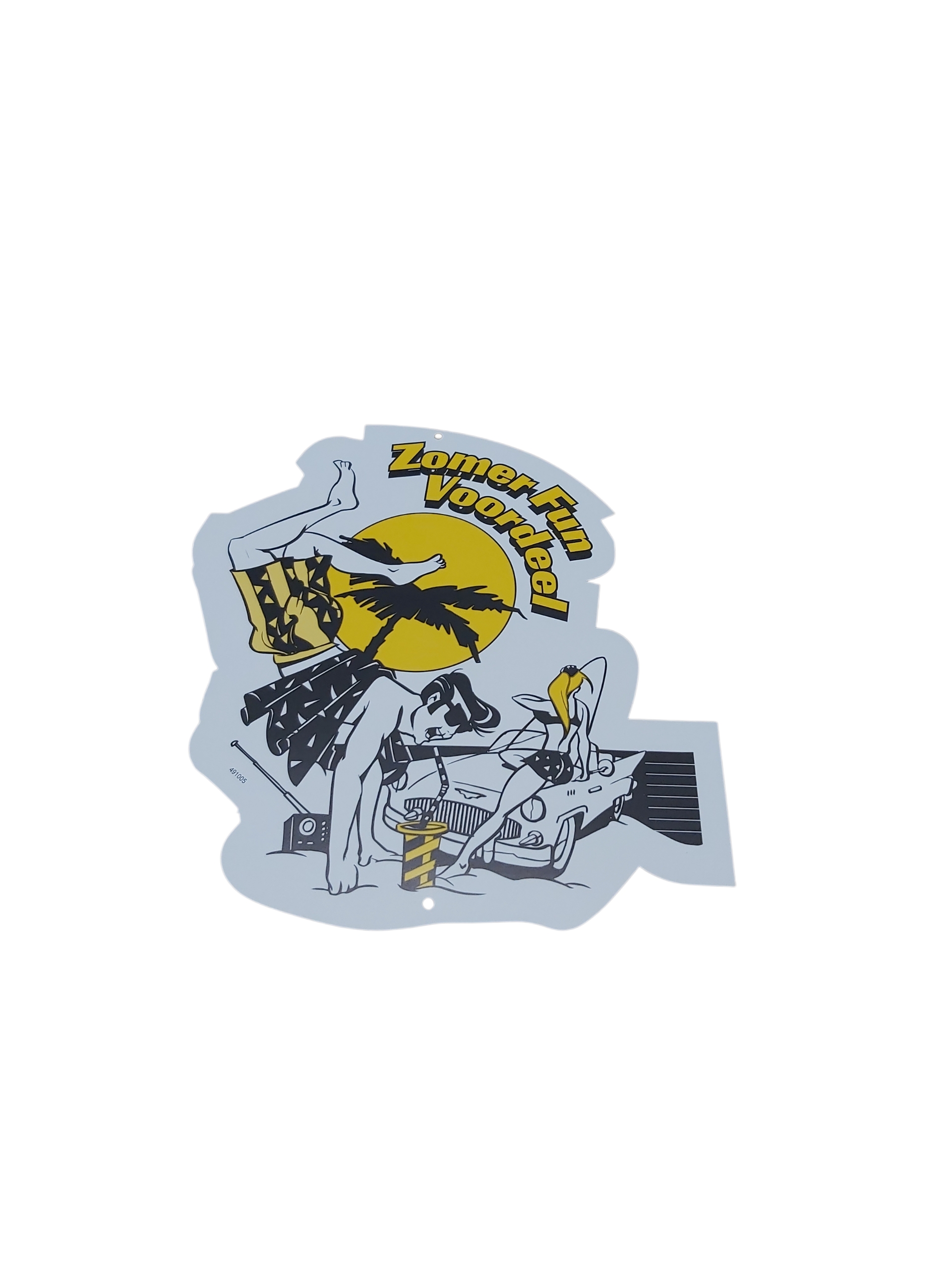 Het betreft 5 kartonnen bordjes met de tekst Zomerfun Voordeel, geschikt om bij het raam of de etalage te hangen.