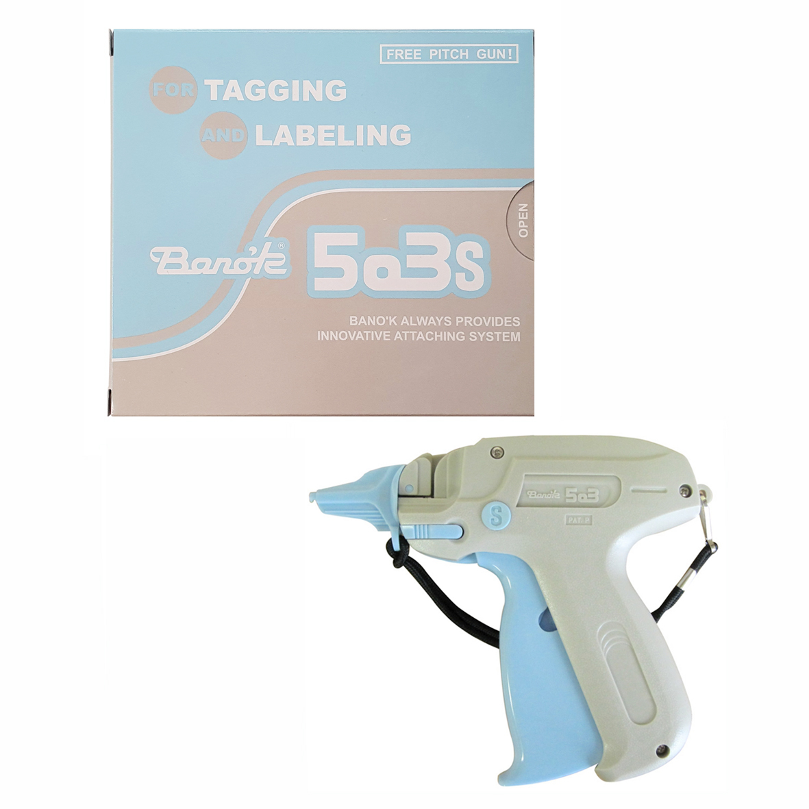 De aanschiettang Banok 503S is een standaard kwaliteitstang voor het bevestigen van labels en prijskaartjes aan kleding.