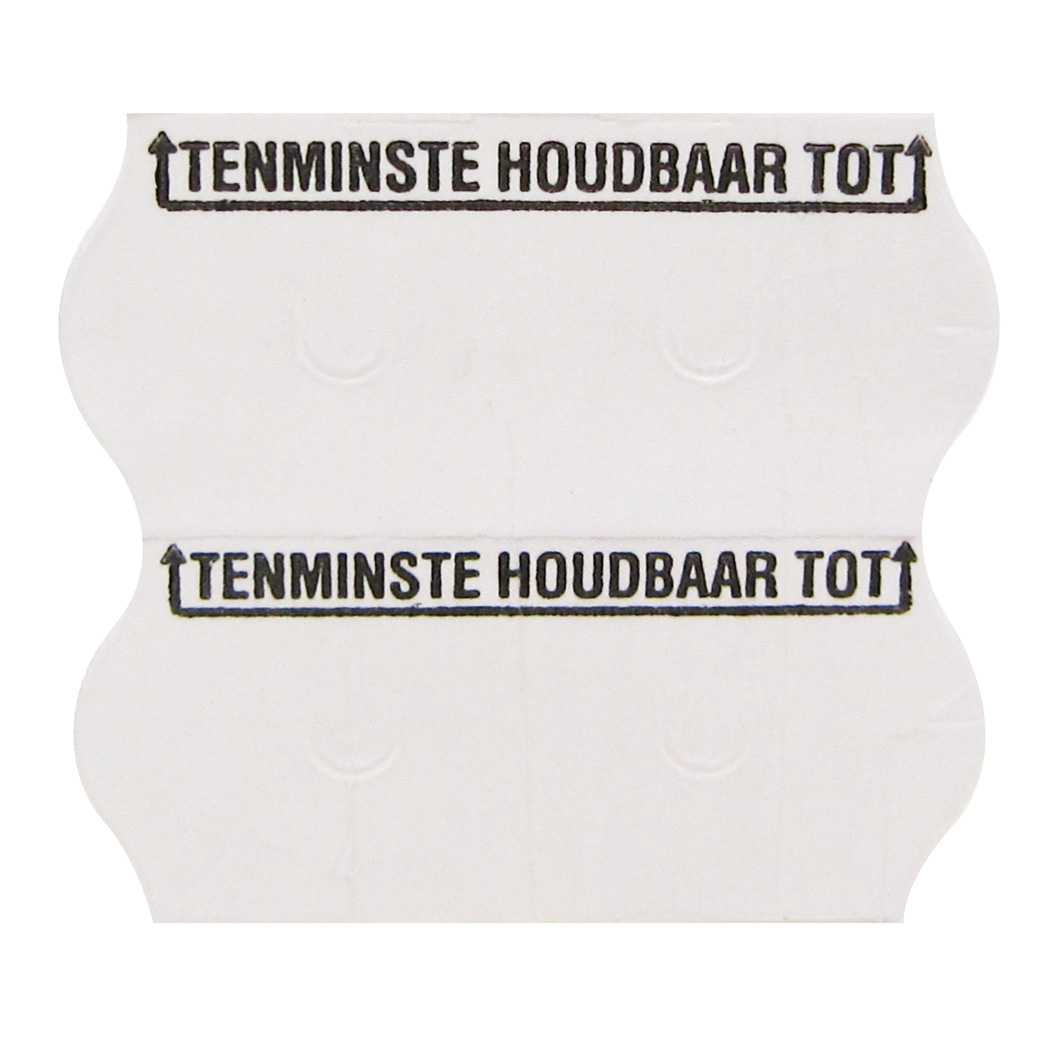 De etiketten zijn bedrukt met Tenminste Houdbaar Tot (boven in het etiket met een lijn eronder) en de lijmkracht is gemaakt voor diepvries temperaturen.