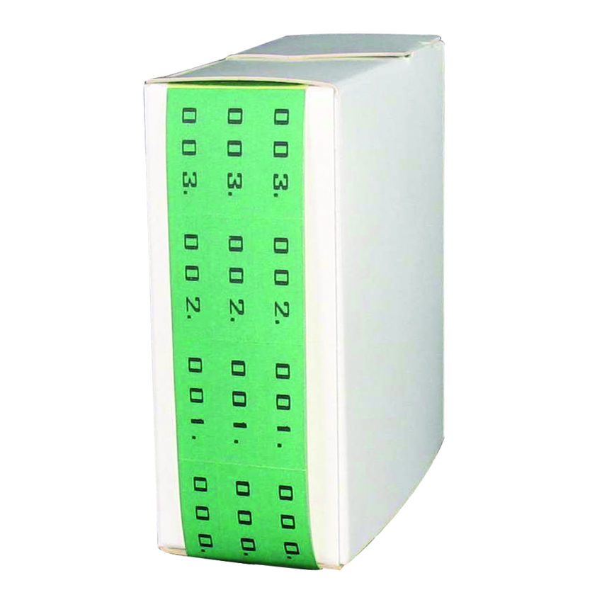 Groene controlestickers met een zwarte bedrukking van de getallen 000 tot en met 999.