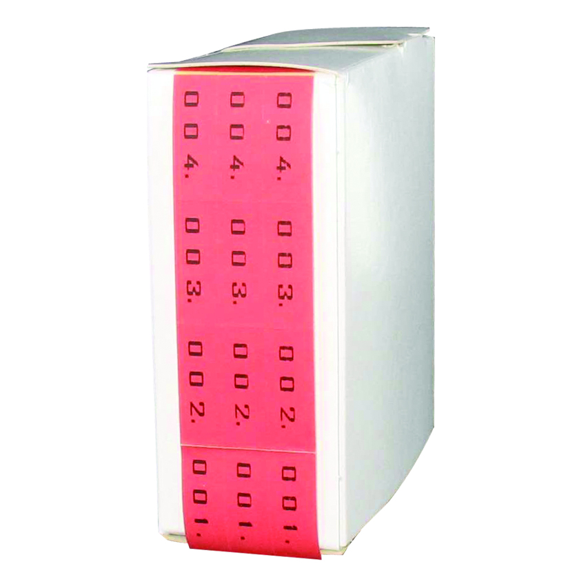 Rode controlestickers met een zwarte bedrukking van de getallen 000 tot en met 999.