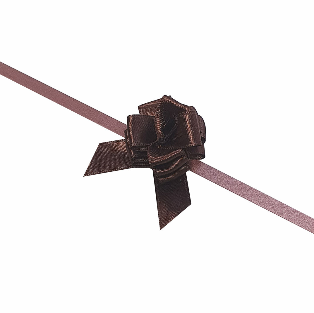 Trekstrik satijn 15mm bruin, per 25 stuks. Met een trekstrik kunt u eenvoudig en snel een strik maken.