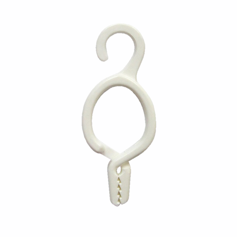 Kunststof clip in het wit, geschikt voor het ophangen van lichte artikelen.