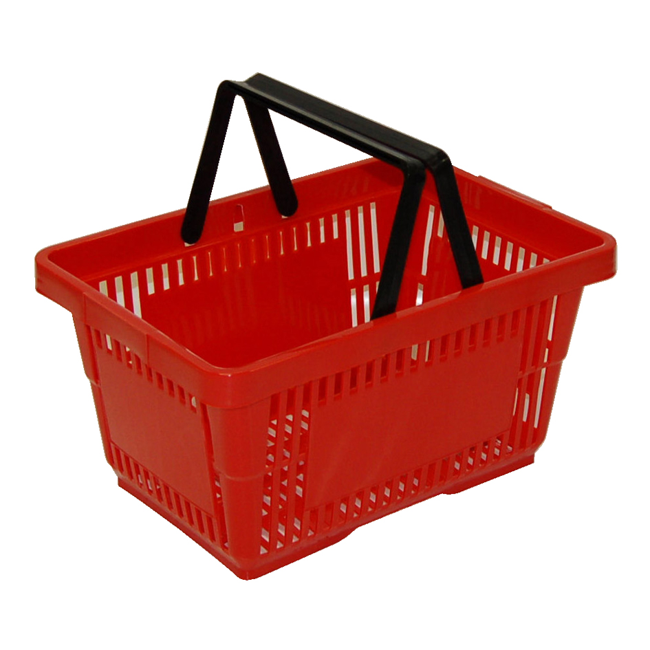 Er past 22 liter inhoud in deze rode boodschappenmand met 2 zwarte handvaten, wat gelijk staat aan max 15 kilo.