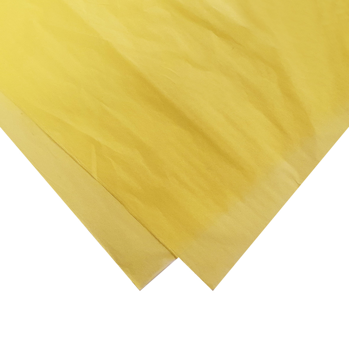 Geel zijdevloeipapier met een formaat van 50 bij 70 centimeter. Er zitten 480 vellen in een pak.