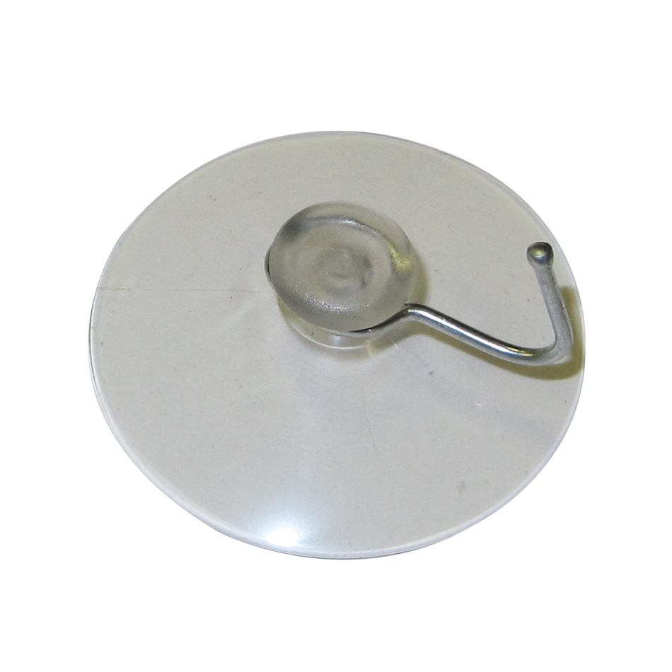 Zuignap 60mm met metalen haakje. Transparante zuignap van zacht PVC met een doorsnee van 60mm, inclusief ophanghaakje van metaal.